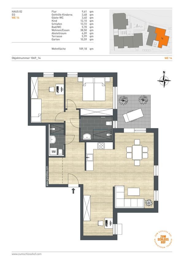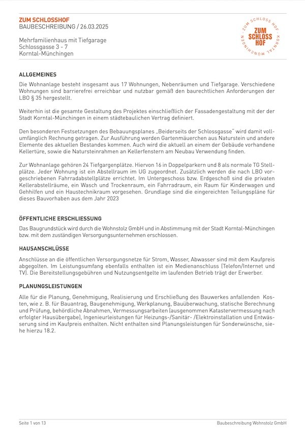 Die inneren Werte des Bauprojekts ZUM SCHLOSS HOF sind ebenso überzeugend wie die Lage und machen das Einziehen zur Freude und das Wohnen angenehm. Die durchdachte und großzügige Raumplanung und Raumaufteilung bringen Struktur und Klarheit. Hochwertige Materialien sorgen für Langlebigkeit.